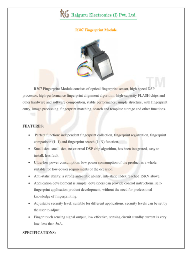 • The R307 fingerprint module has two interface TTL UART and USB2.0, USB2.0