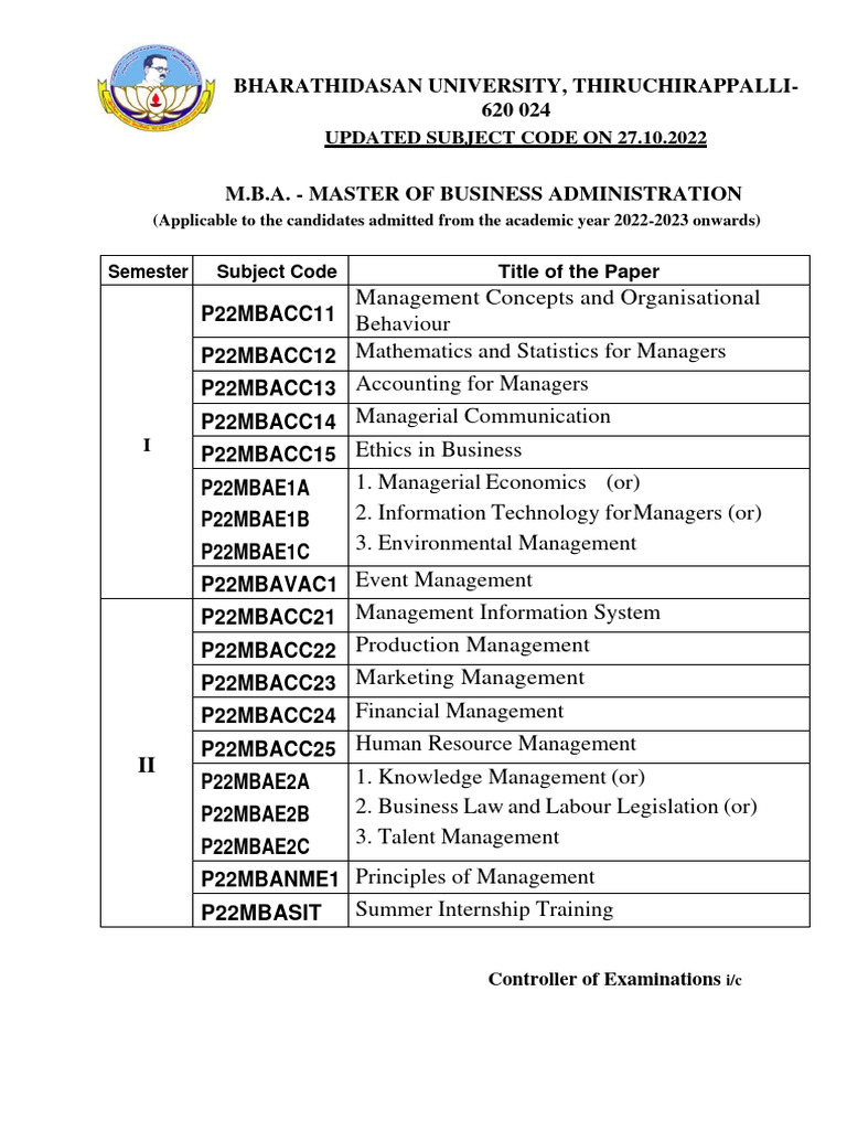 (Applicable to the candidates admitted from the academic year 2022-2023 onwards)