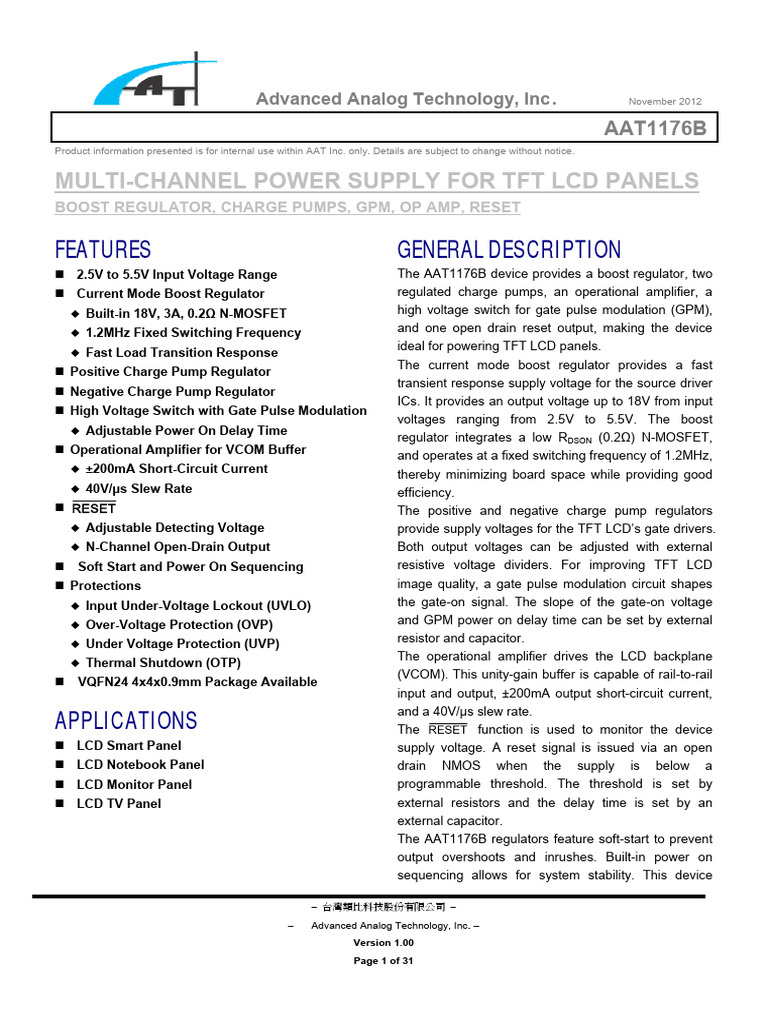 Product information presented is for internal use within AAT Inc. only. Details are subject to change without notice.