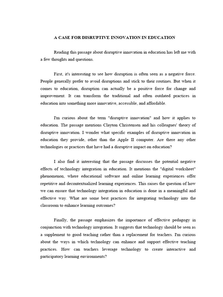 Reading this passage about disruptive innovation in education has left me with