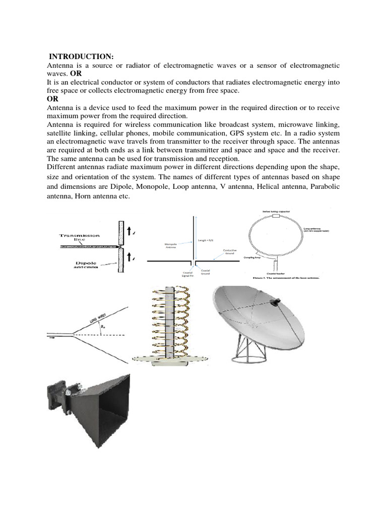 and dimensions are Dipole, Monopole, Loop antenna, V antenna, Helical antenna, Parabolic
