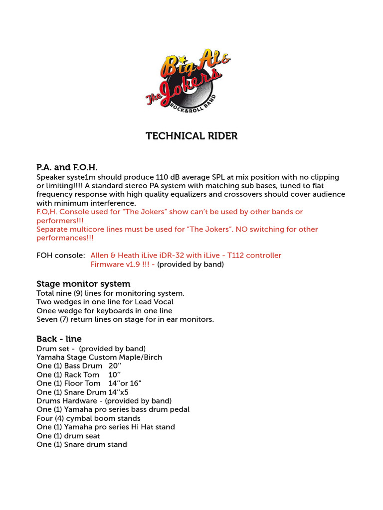 Any changes to this rider MUST BE DISCUSSED with band at least 1