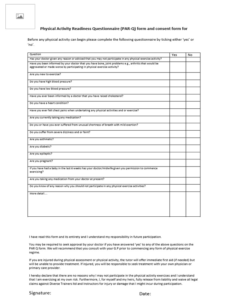 Physical Activity Readiness Questionnaire (PAR-Q) form and consent form for