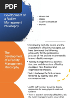 New definition from BIFM : Facilities management is the integration of processes within an organisation to maintain and develop the agreed services which support and improve the effectiveness of its primary activities. Broad definition according to this book: FM is about taking control, adding value, supporting the business, ensuring that the space and working environment enhance not impede the productivity of the core activity and the staff. 9) Facility Design and Management Handbook Facilities management (FM) is a multidisciplinary or Tran disciplinary profession drawing on theories and principles of engineering, architecture, design, accounting, finance, management, and behavioural science. These disciplines each have a rich history of theory, research, and practice. Facilities management, as a new discipline, builds on this foundation to create a new set of theories and practices.
