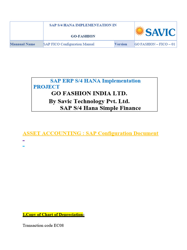 Mannual Name SAP FICO Configuration Manual Version GO FASHION – FICO – 01