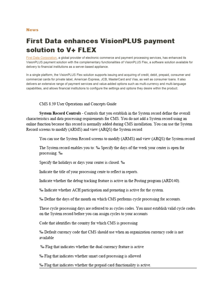 First Data enhances VisionPLUS payment