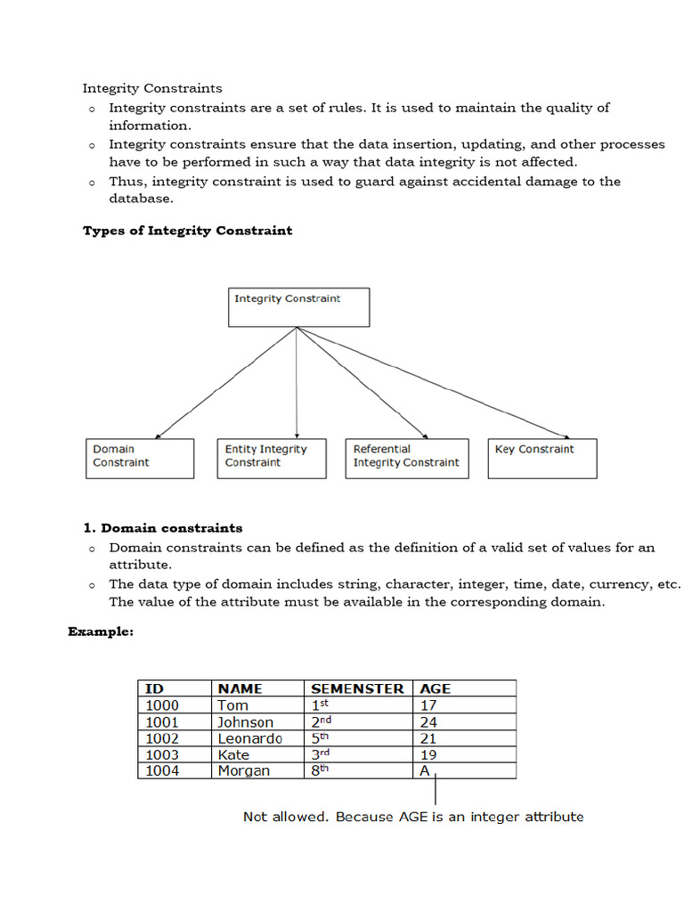 o Domain constraints can be defined as the definition of a valid set of values for an