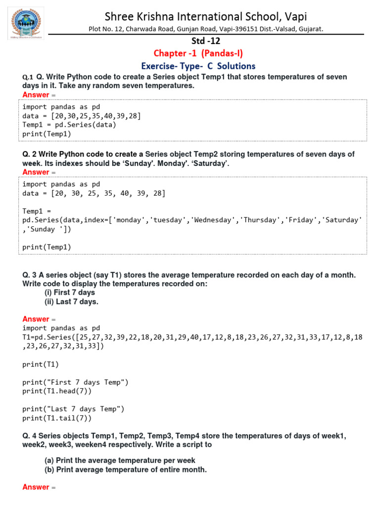 Q.1 Q. Write Python code to create a Series object Temp1 that stores temperatures of seven