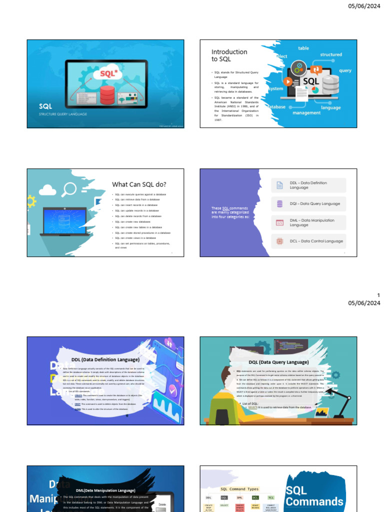 • DROP: This command is used to delete objects from the database. • List of DQL: