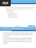 ● The JDBC Type 1 driver translates JDBC calls into ODBC (Open Database Connectivity) calls,