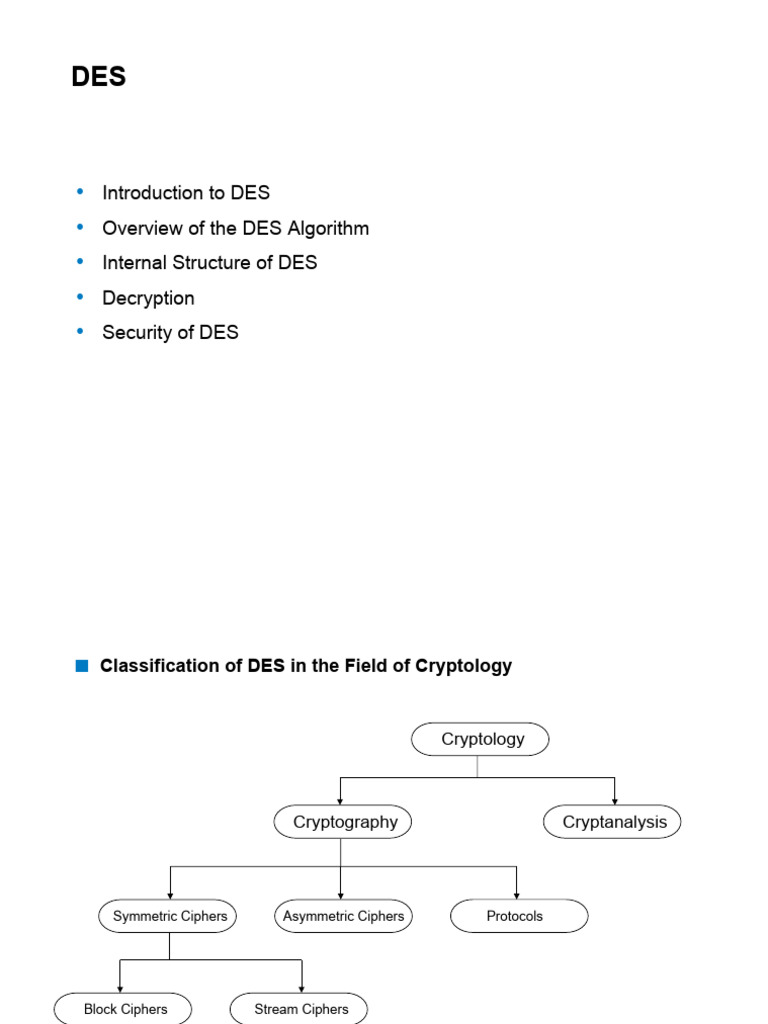 Classification of DES in the Field of Cryptology