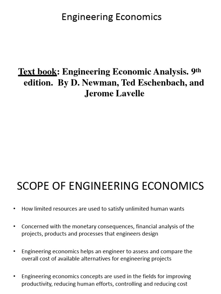 • Thus, engineering economy involves technical analysis, with emphasis on