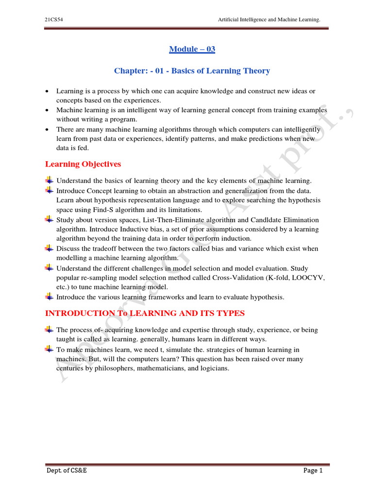 algorithm. Introduce Inductive bias, a set of prior assumptions considered by a learning