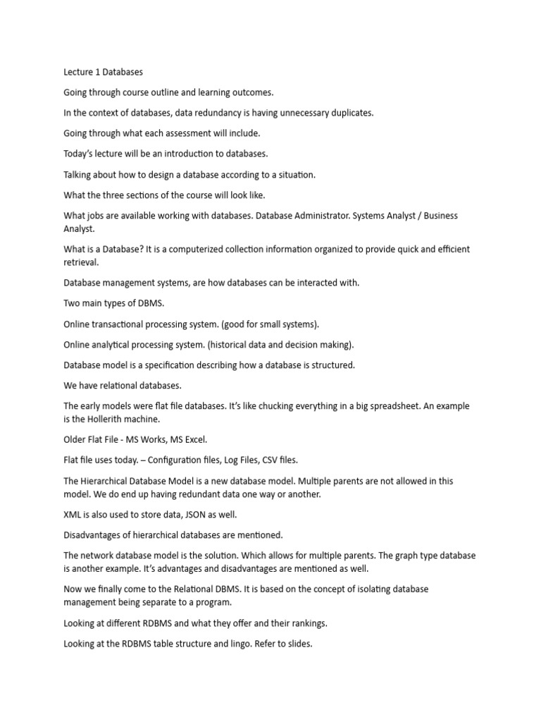 Looking at the RDBMS table structure and lingo. Refer to slides.