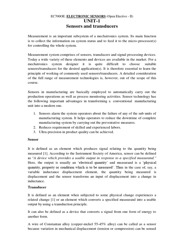 EC700OE: ELECTRONIC SENSORS (Open Elective - II)
