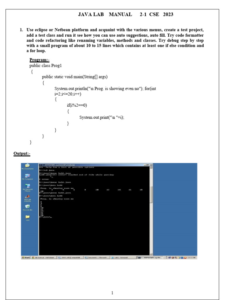 1. Use eclipse or Netbean platform and acquaint with the various menus, create a test project,