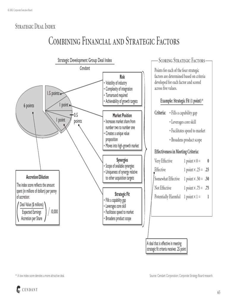 * A low index score denotes a more attractive deal. Source: Cendant Corporation; Corporate Strategy Board research.