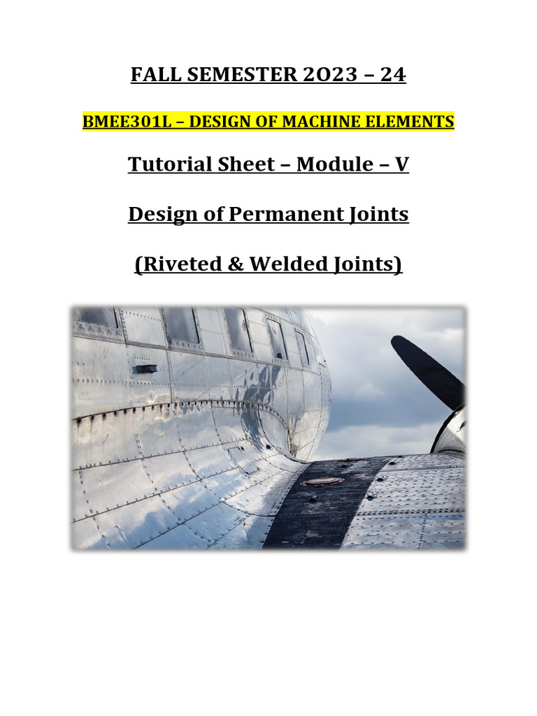 BMEE301L – DESIGN OF MACHINE ELEMENTS