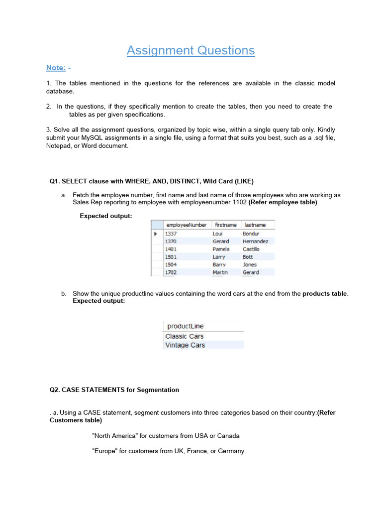 3. Solve all the assignment questions, organized by topic wise, within a single query tab only. Kindly