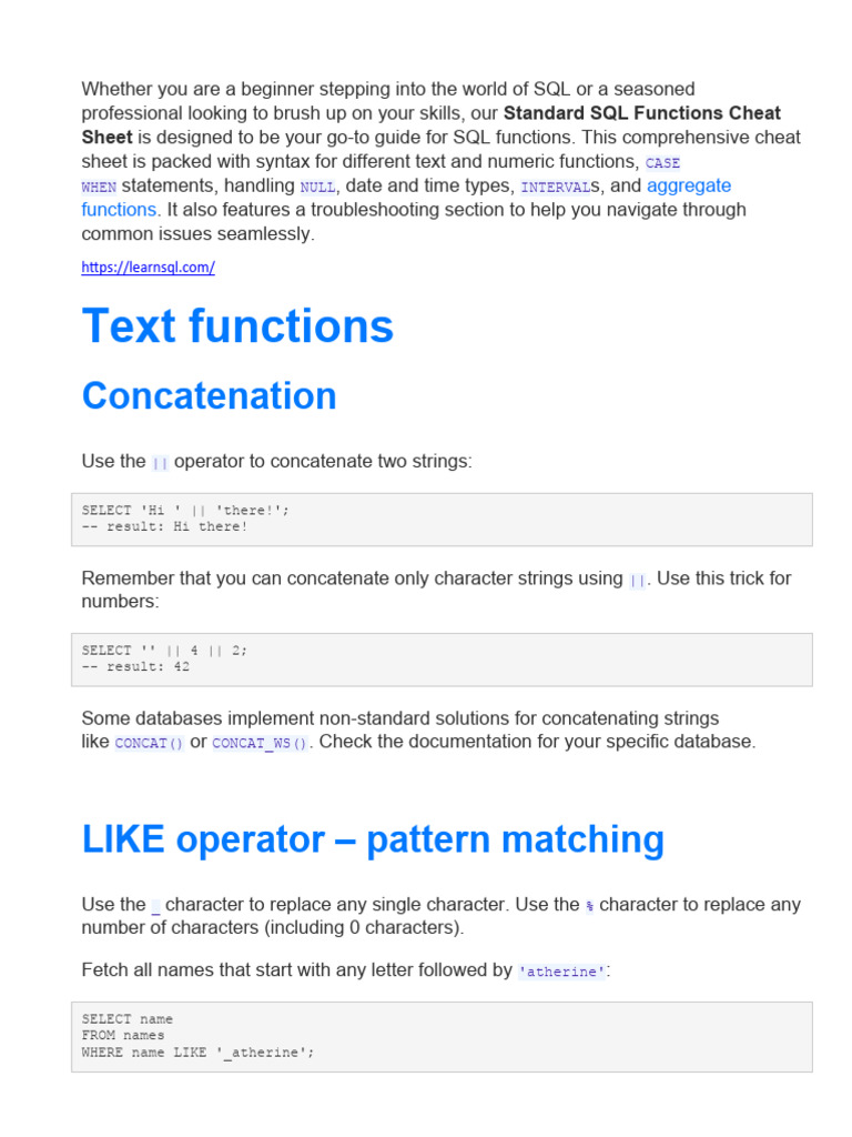 professional looking to brush up on your skills, our Standard SQL Functions Cheat