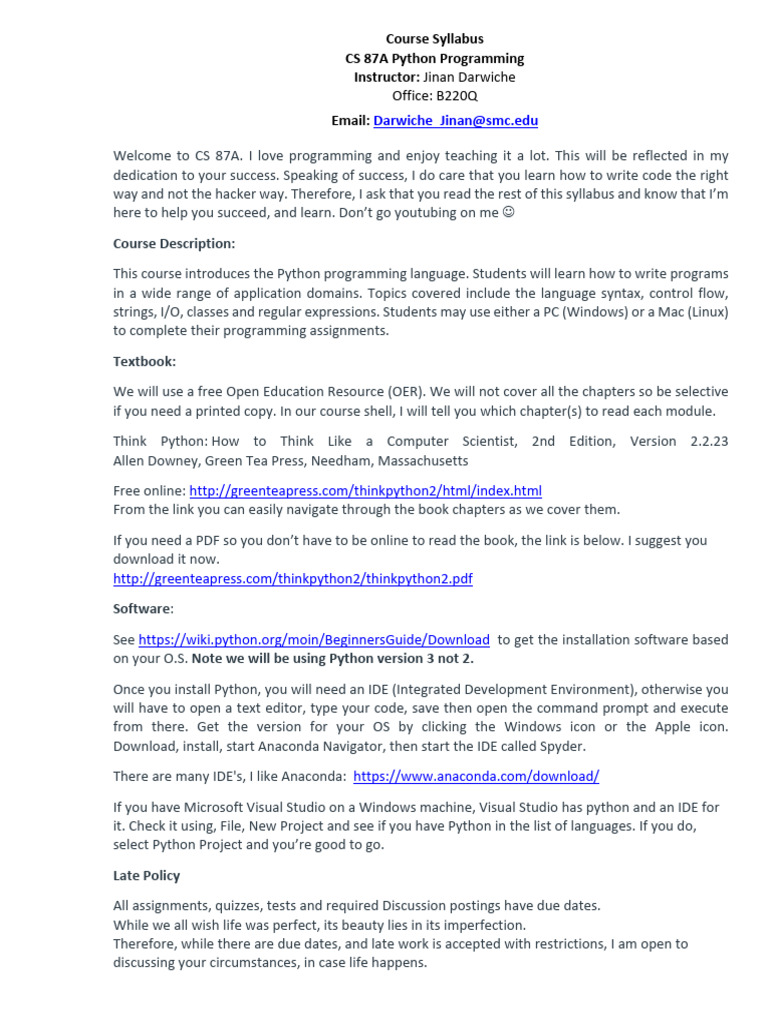 CS 87A Python Programming