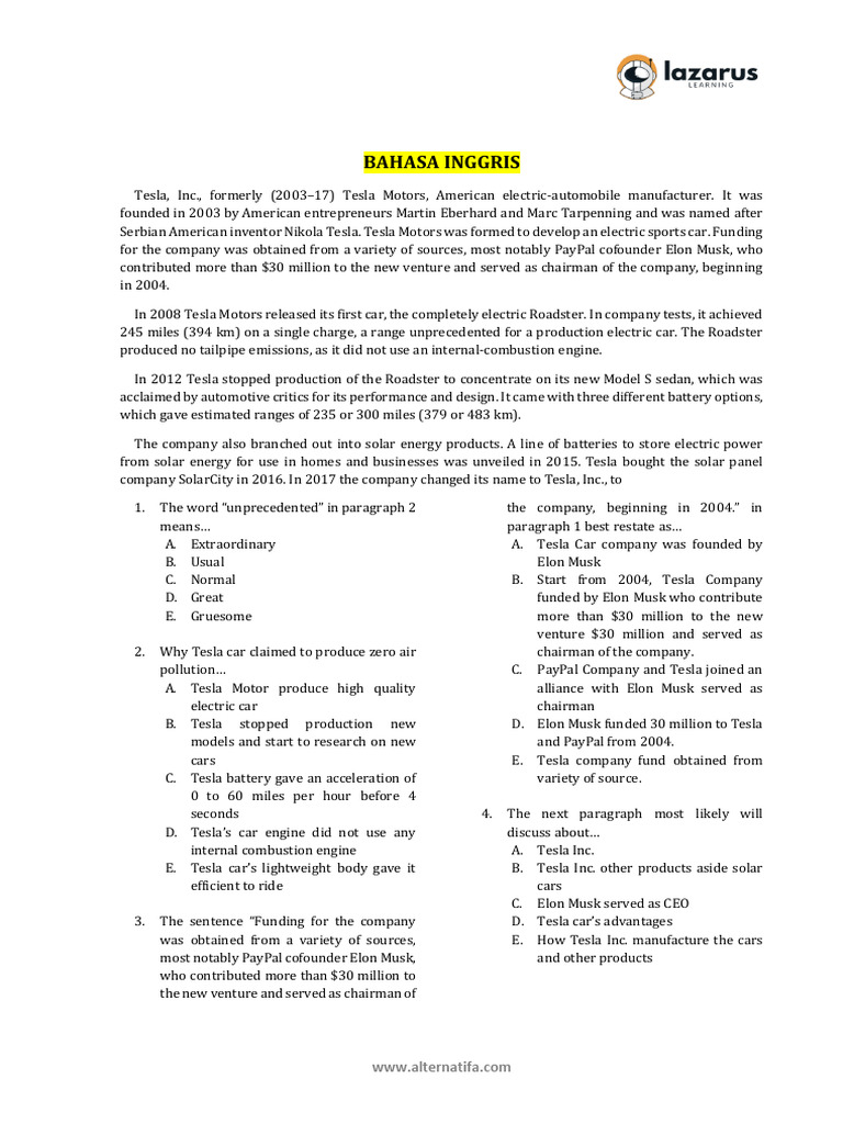 A. Extraordinary A. Tesla Car company was founded by
