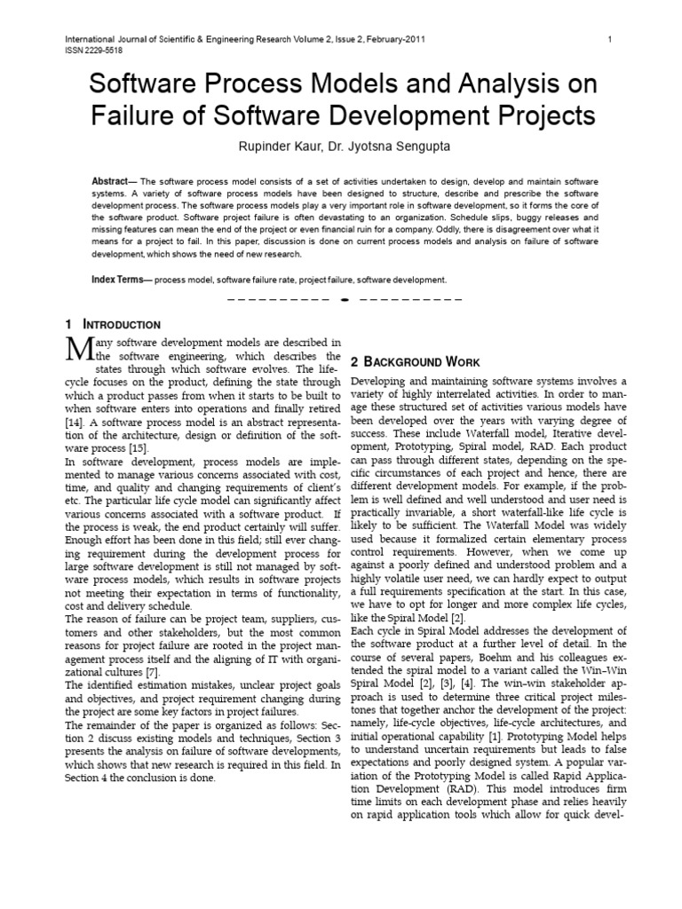 means for a project to fail. In this paper, discussion is done on current process models and analysis on failure of software