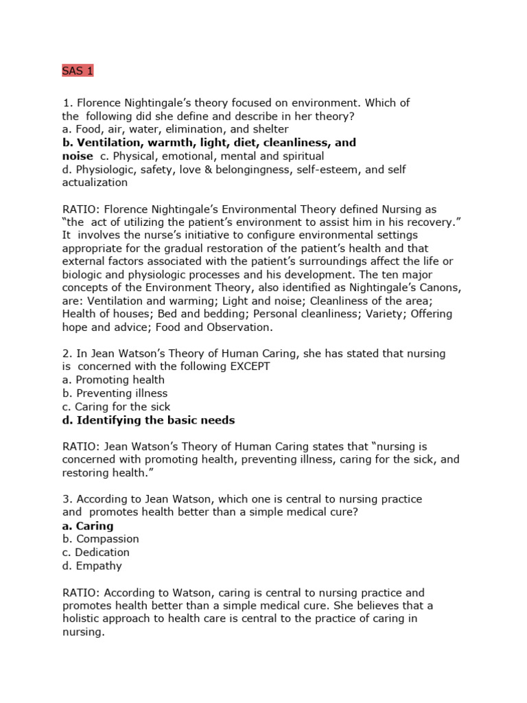 RATIO: Jean Watson’s theory focuses on health promotion, as well as