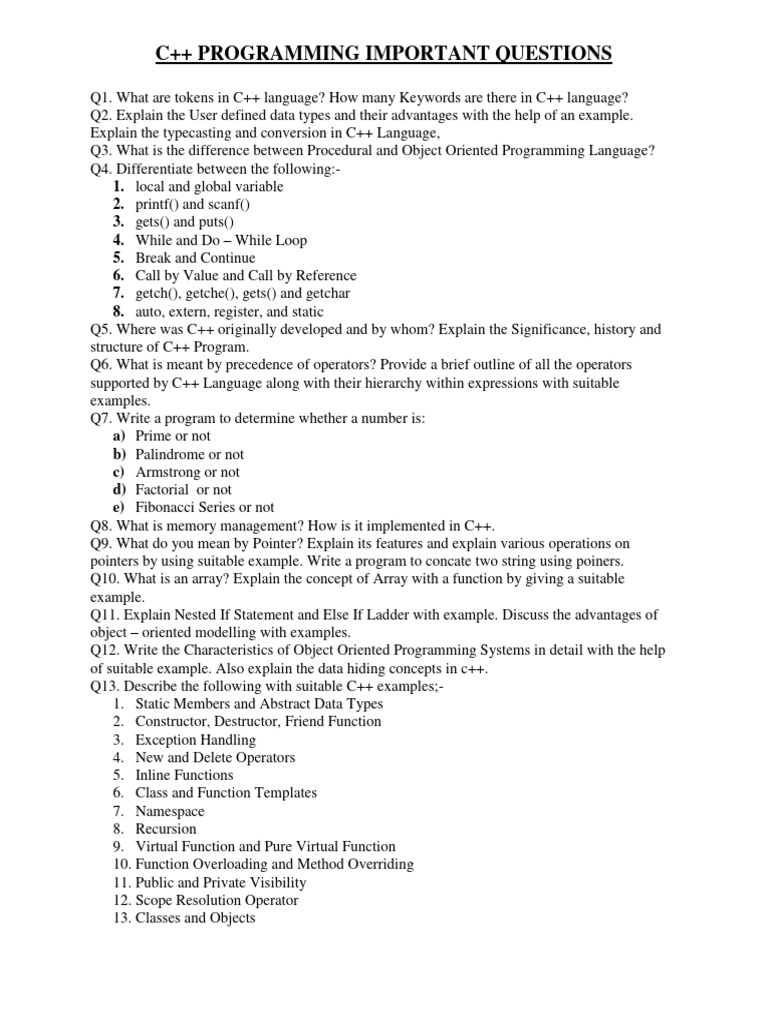C++ PROGRAMMING IMPORTANT QUESTIONS
