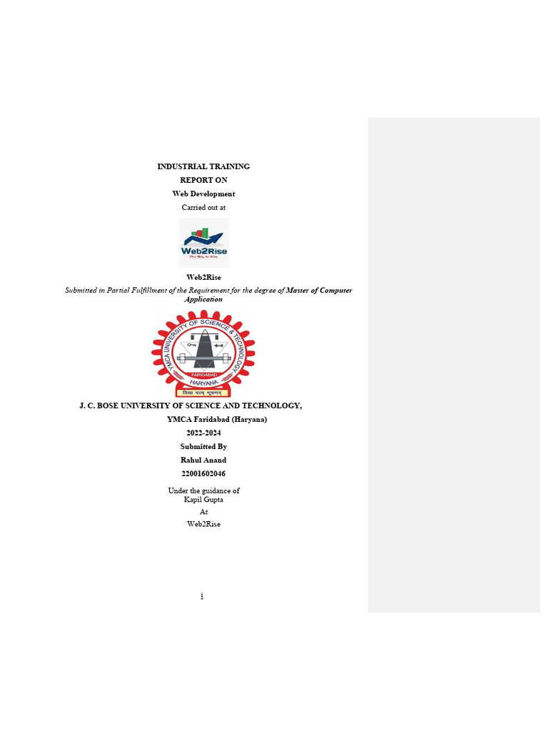 this project of such importance. This exposure has enriched me with technical knowledge and also