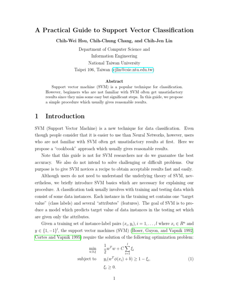Note that this guide is not for SVM researchers nor do we guarantee the best