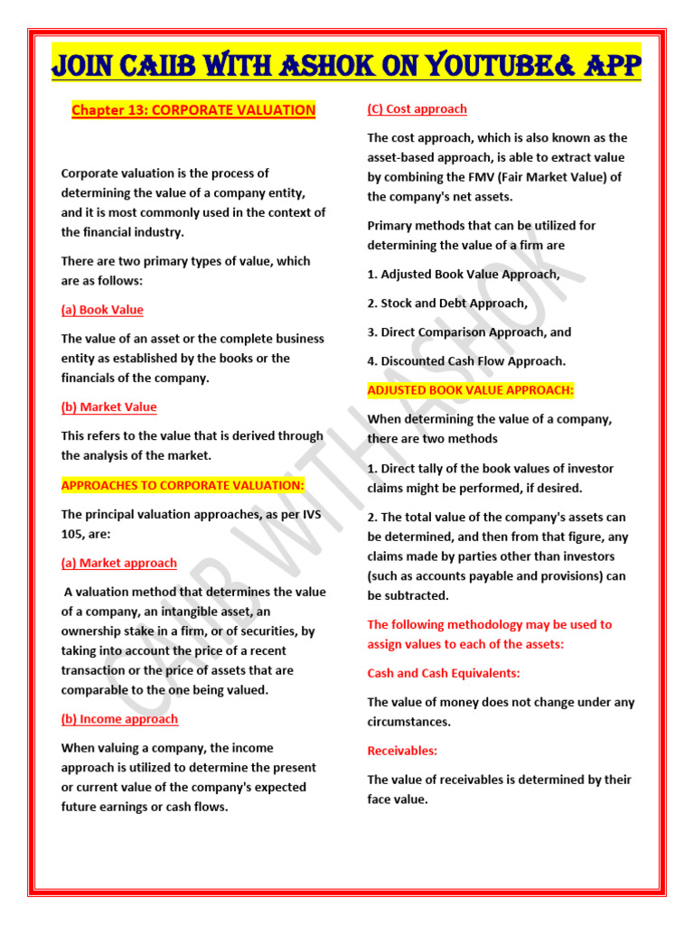 APPROACHES TO CORPORATE VALUATION: claims might be performed, if desired.