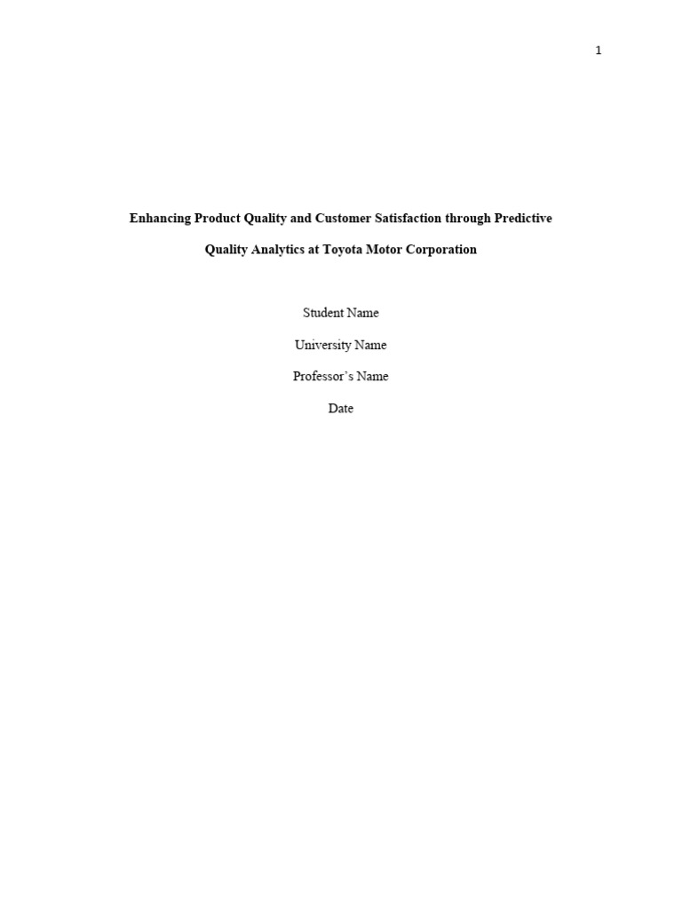 satisfaction through predictive quality analytics at Toyota Motor Corporation. In this scenario,
