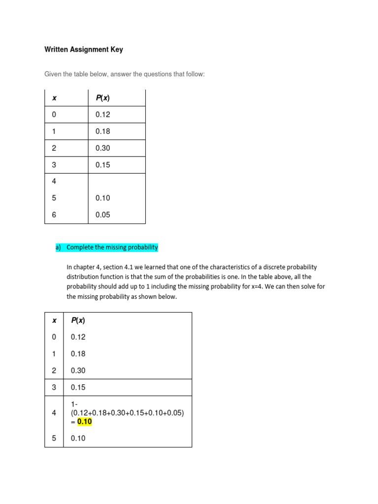 probability should add up to 1 including the missing probability for x=4. We can then solve for