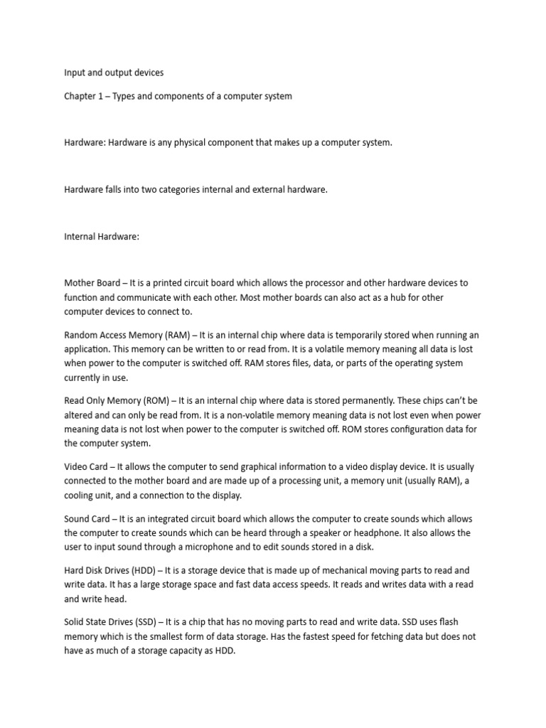 connected to the mother board and are made up of a processing unit, a memory unit (usually RAM), a