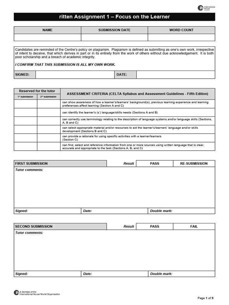 ritten Assignment 1 – Focus on the Learner
