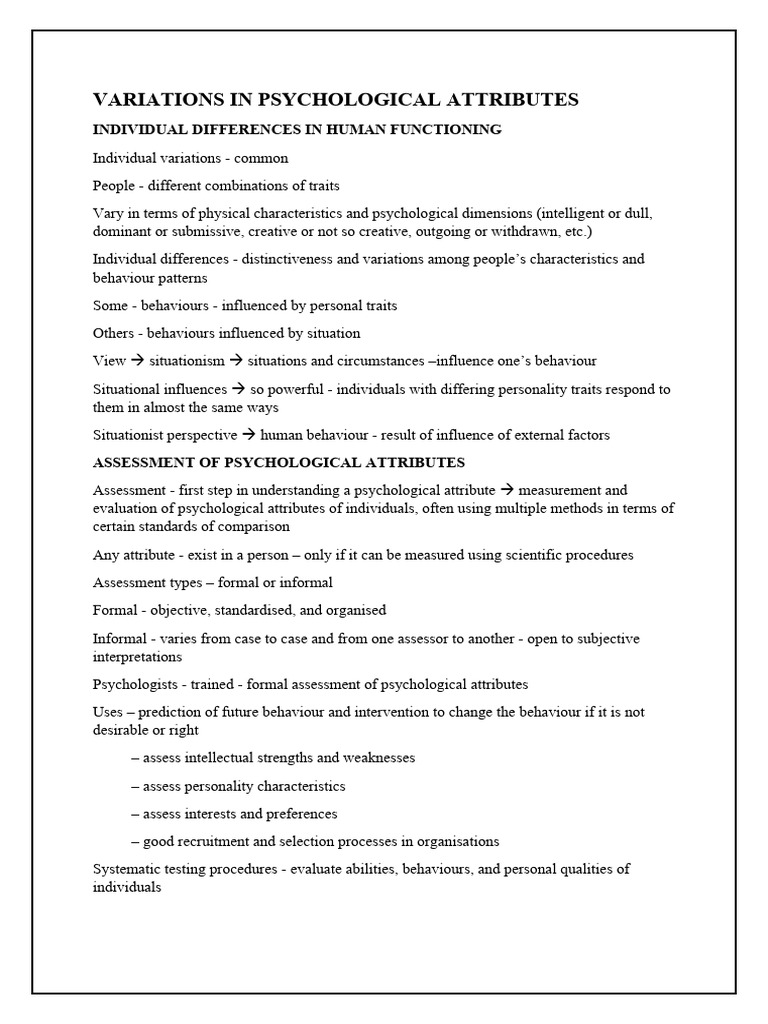 VARIATIONS IN PSYCHOLOGICAL ATTRIBUTES