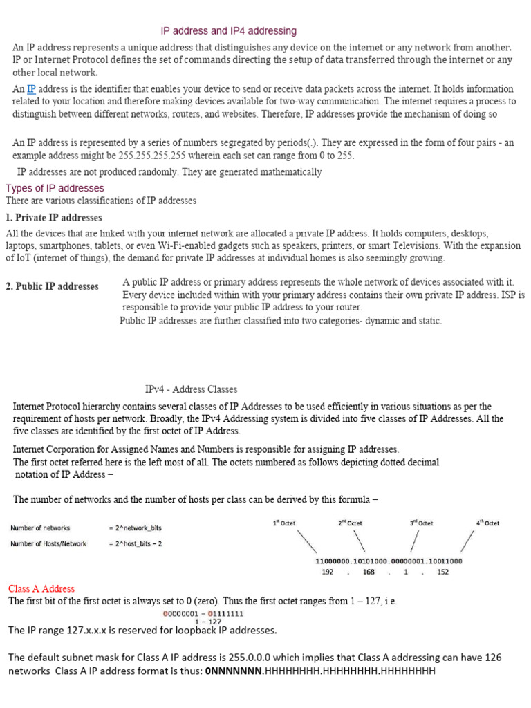 •Further, the 4 parts of the IP address is divided into parts: a network ID and a Host ID.