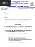 the Secretary TANCET, Centre for Entrance Examinations, Anna University, Chennai for necessary action.