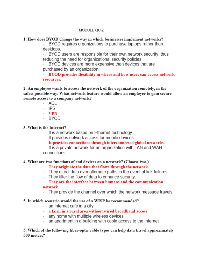 1. How does BYOD change the way in which businesses implement networks?