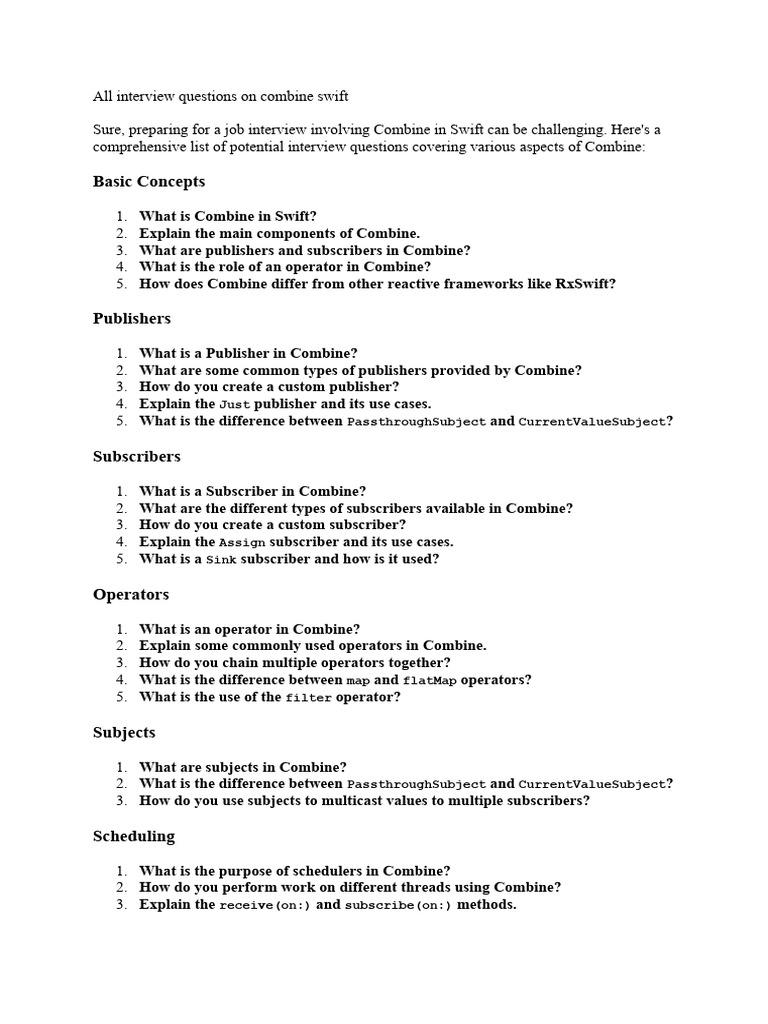 comprehensive list of potential interview questions covering various aspects of Combine: