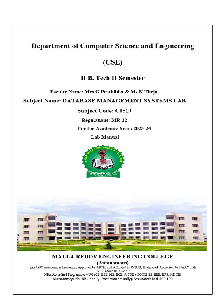 Subject Name: DATABASE MANAGEMENT SYSTEMS LAB