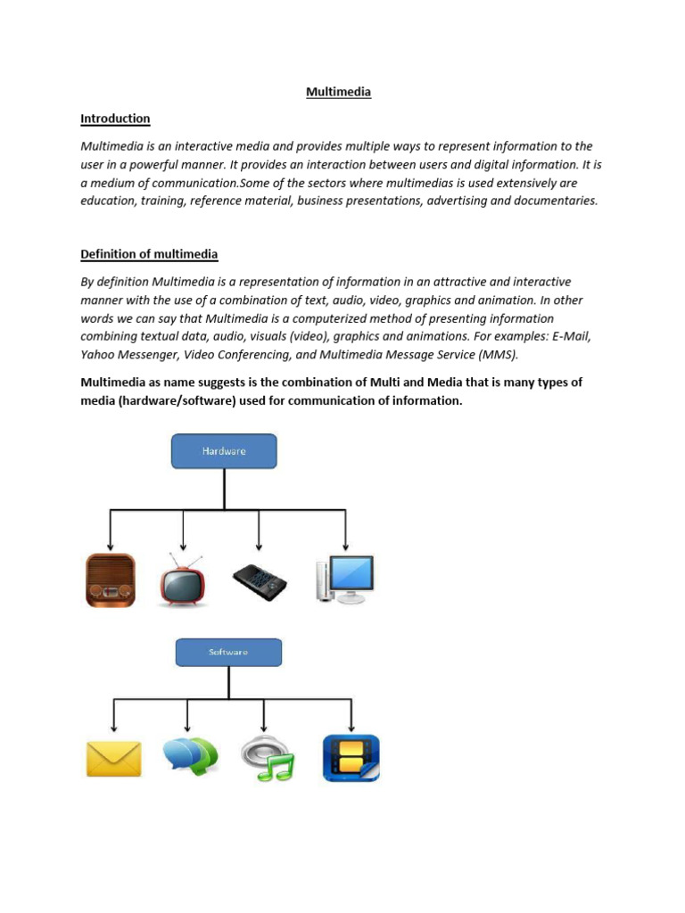 combining textual data, audio, visuals (video), graphics and animations. For examples: E-Mail,