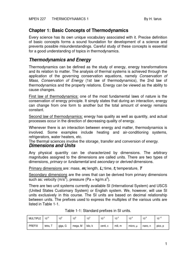 Chapter 1: Basic Concepts of Thermodynamics