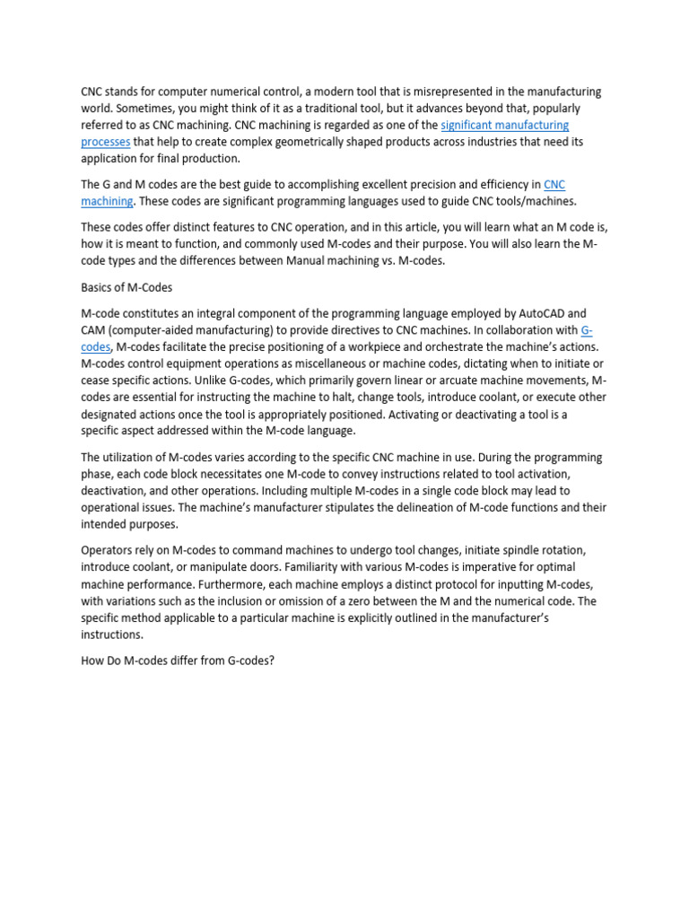 machines receive, known as M-codes. These codes become the machines’ guides, effectively controlling