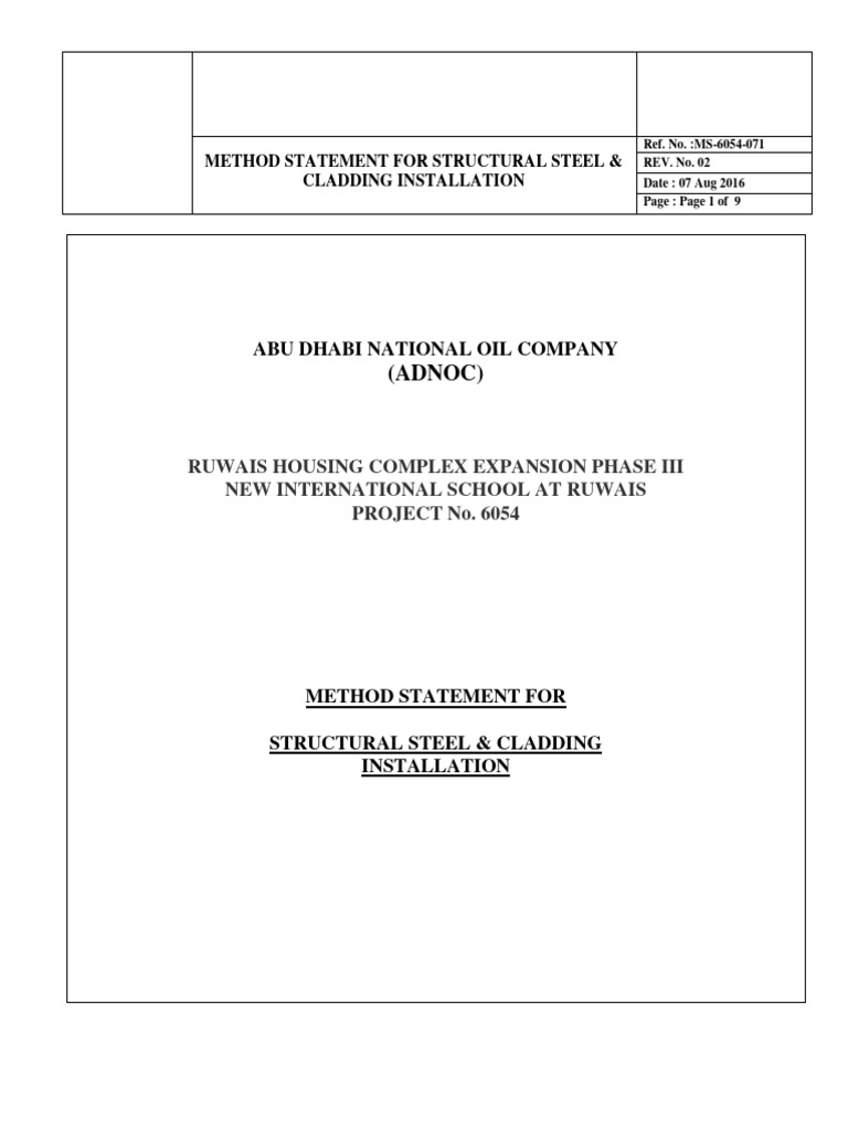 METHOD STATEMENT FOR STRUCTURAL STEEL & REV. No. 02
