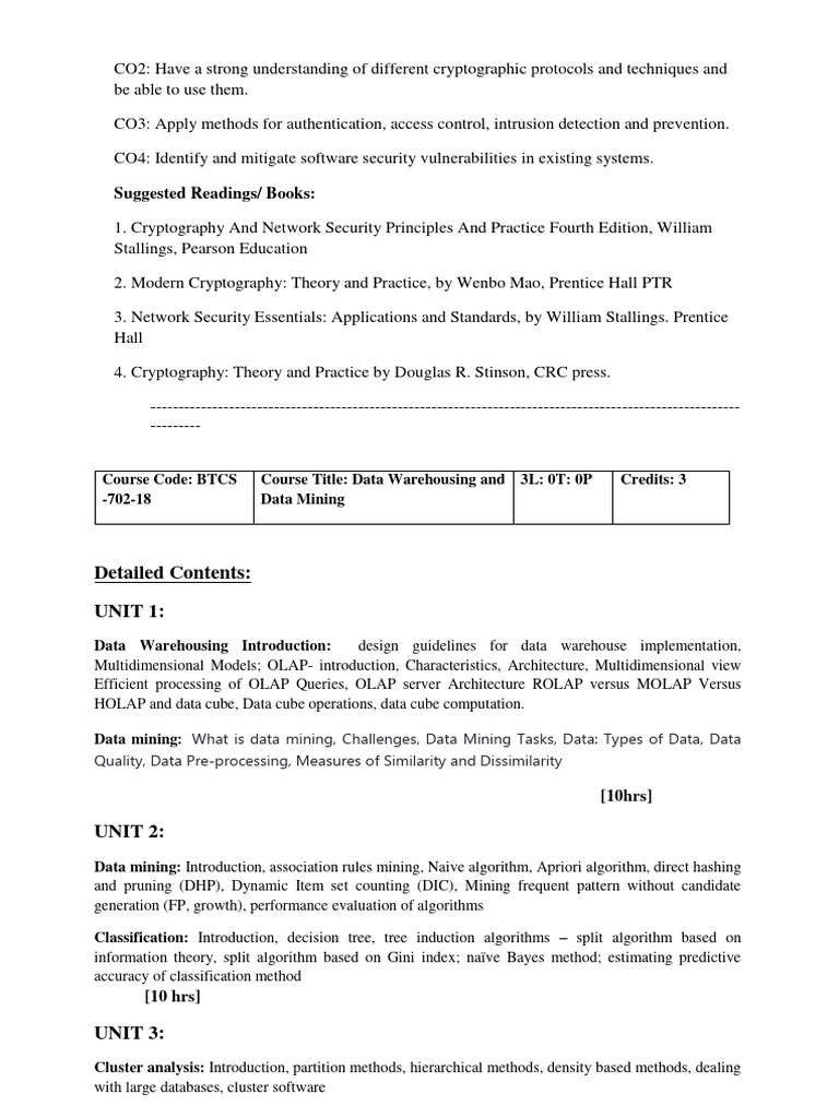 Course Code: BTCS Course Title: Data Warehousing and 3L: 0T: 0P Credits: 3