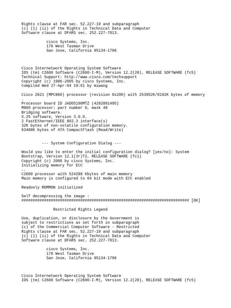 IOS (tm) C2600 Software (C2600-I-M), Version 12.2(28), RELEASE SOFTWARE (fc5)