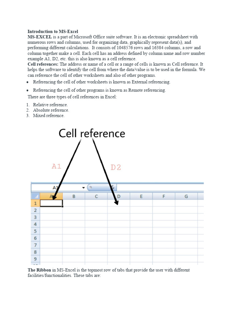 MS-EXCEL is a part of Microsoft Office suite software. It is an electronic spreadsheet with