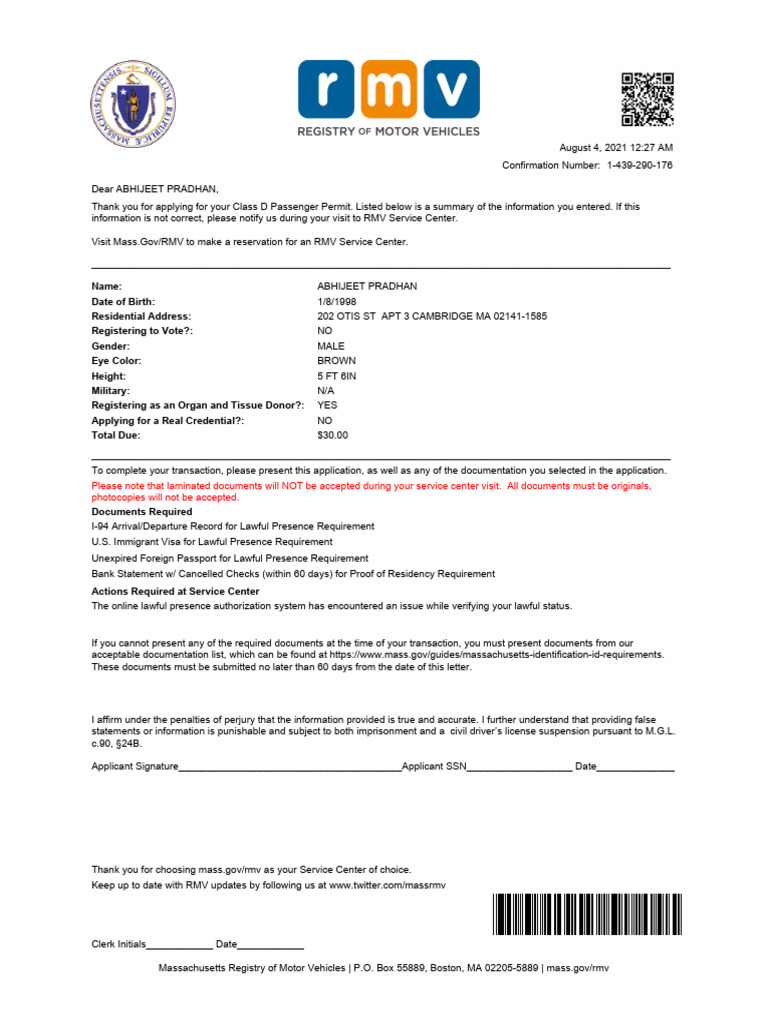 Thank you for choosing mass.gov/rmv as your Service Center of choice.